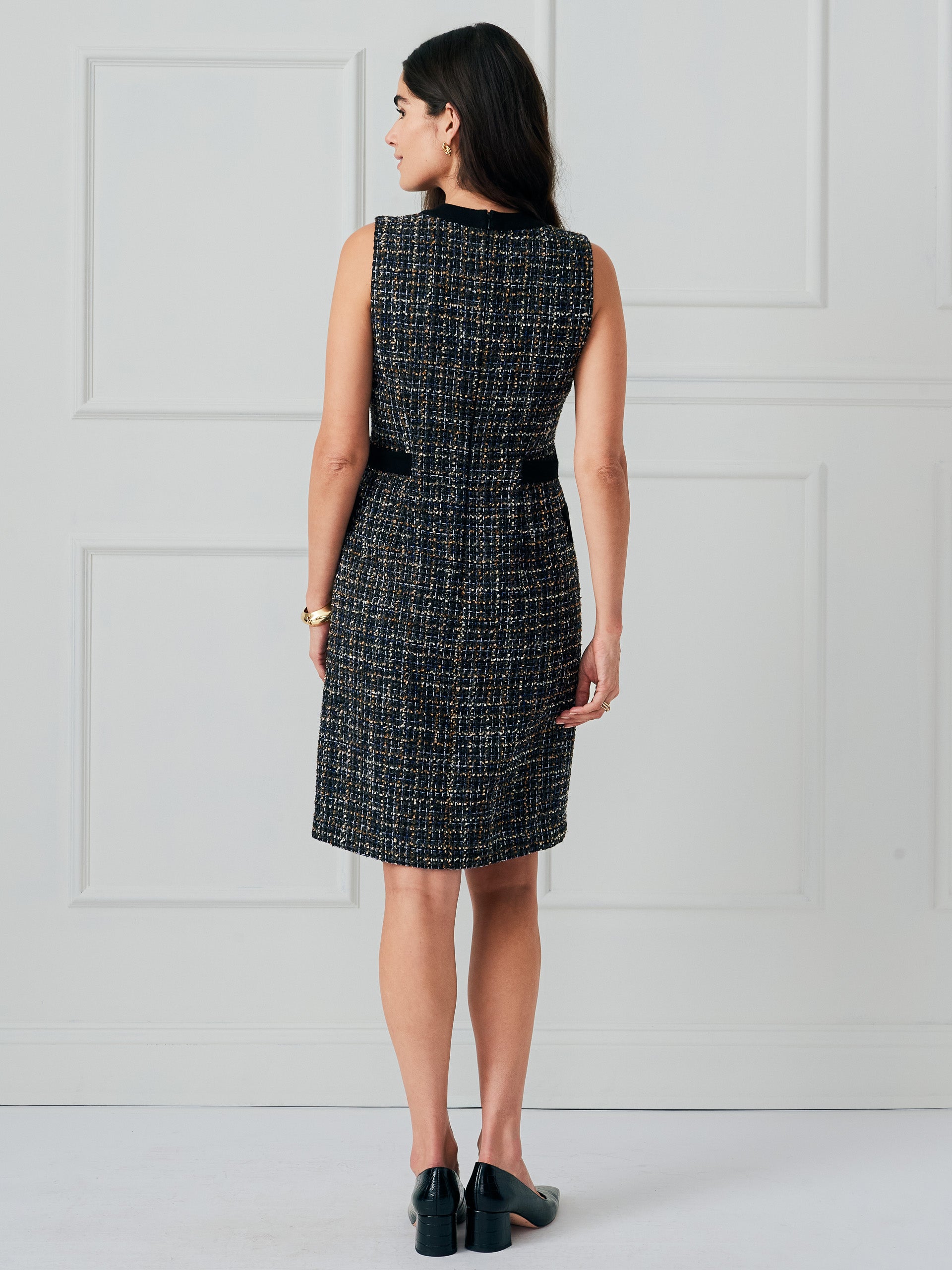 Yarn-dyed tweed body (100% Polyester), Faux suede detailing (92% Polyester, 8% Spandex)