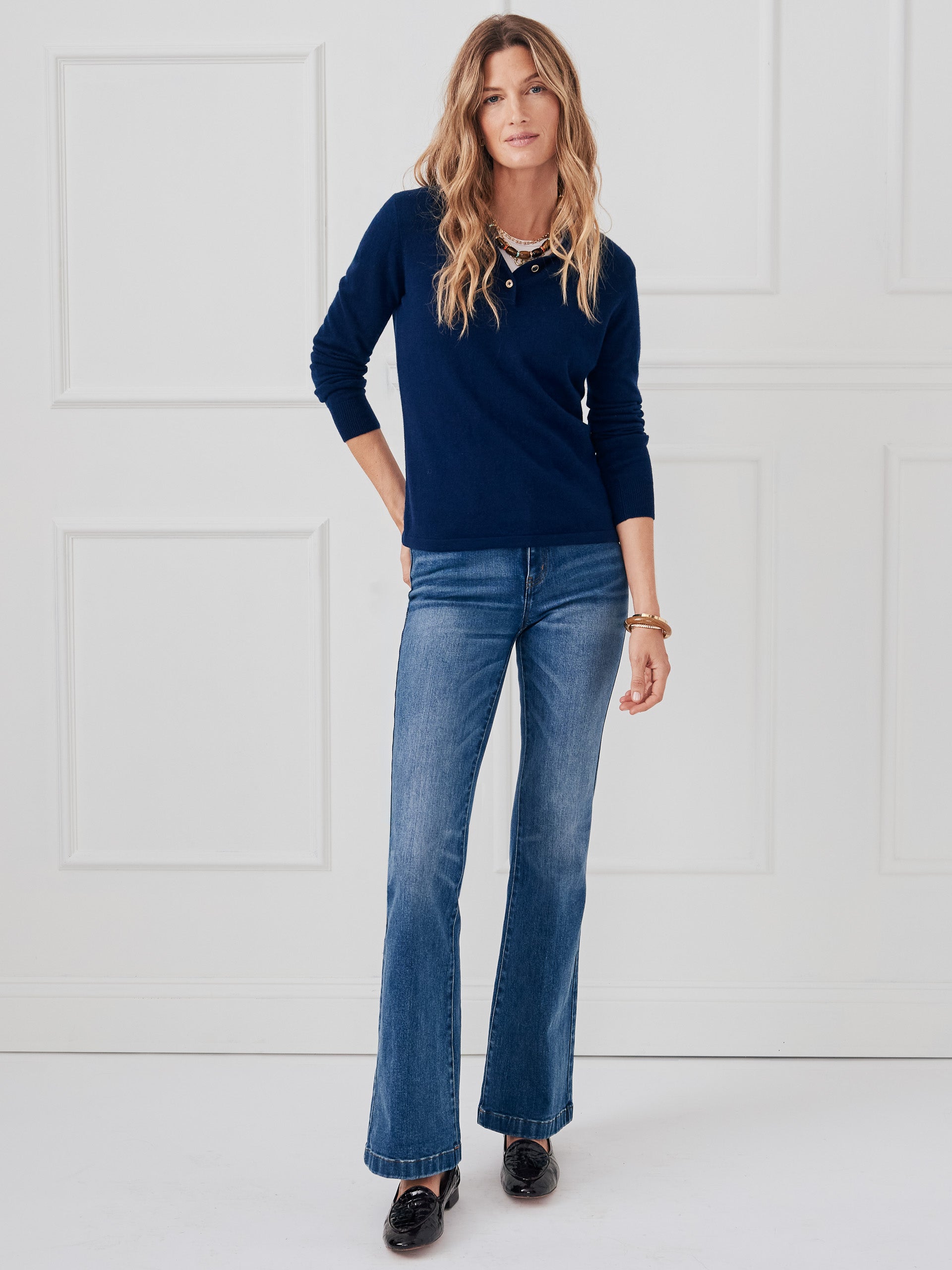 Meet Cam: the cashmere polo designed to flatter. Luxe details like ribbed cuffs and a three-button placket make this sweater an instant classic.