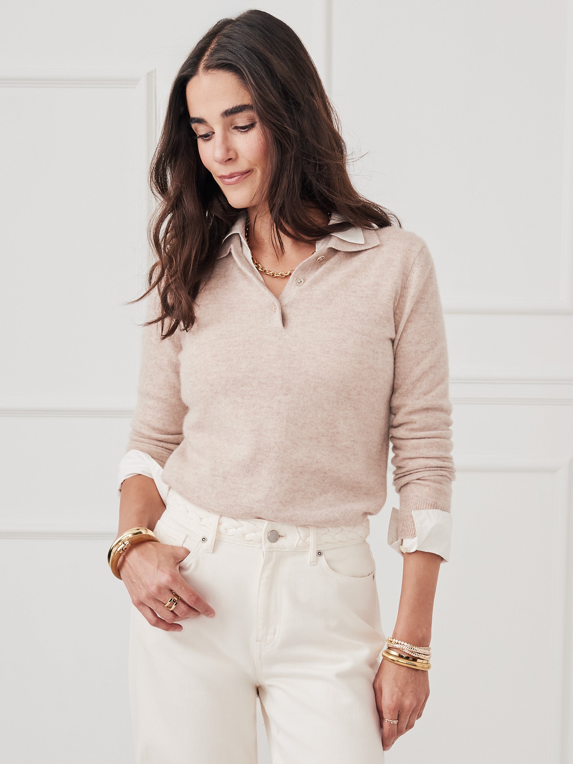 Meet Cam: the cashmere polo designed to flatter. Luxe details like ribbed cuffs and a three-button placket make this sweater an instant classic.