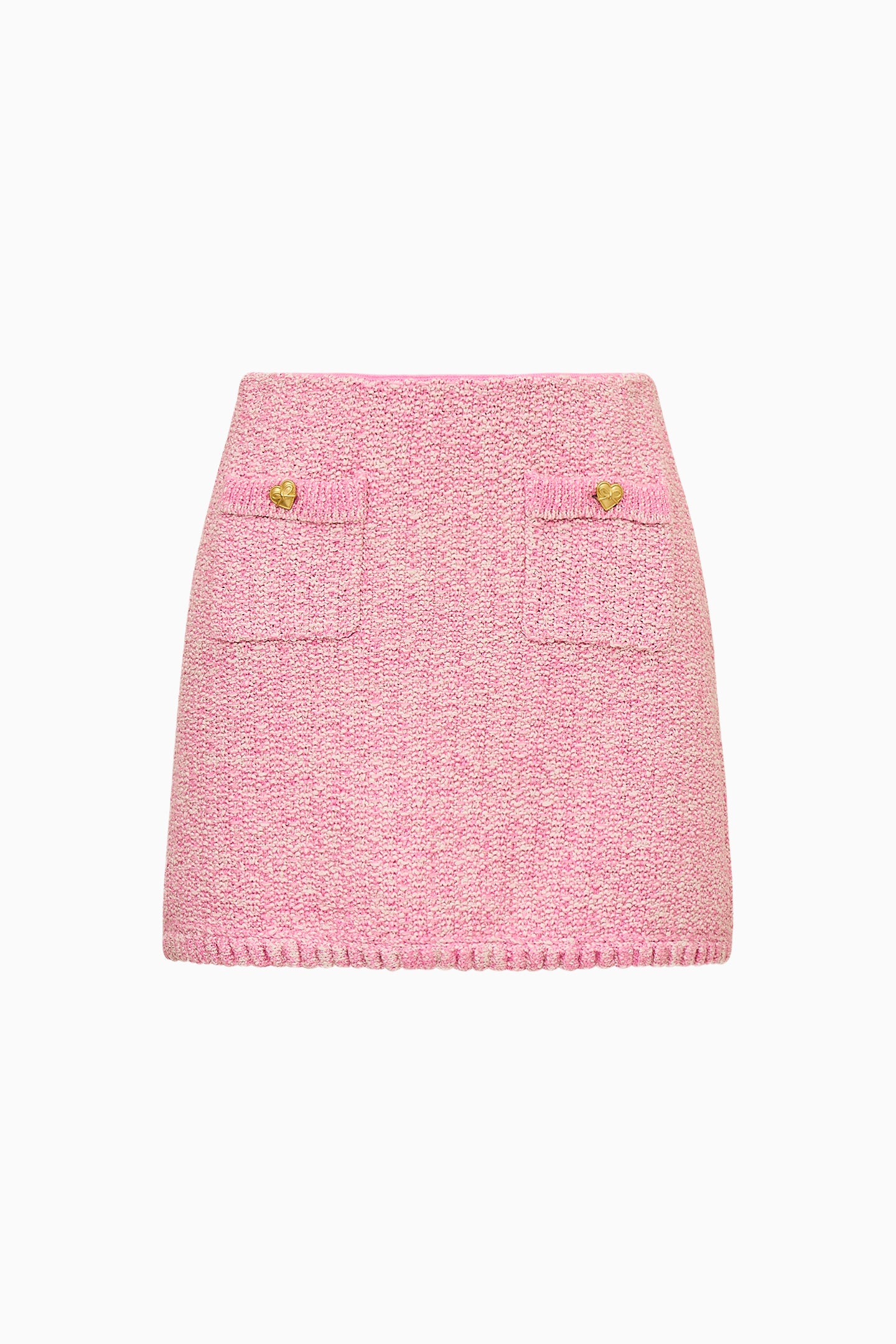 The Ellianna Skirt makes its debut for the autumn season. Crafted in a soft white-and-pink melange tweed with subtle lurex shimmer. this slim-fit. A-line silhouette features an elastic waistband for comfort. two functional pockets. and a flattering shape that pairs perfectly with the Delcie Cardigan. Romantic. polished. and endlessly wearable—your new favorite set just got even sweeter.