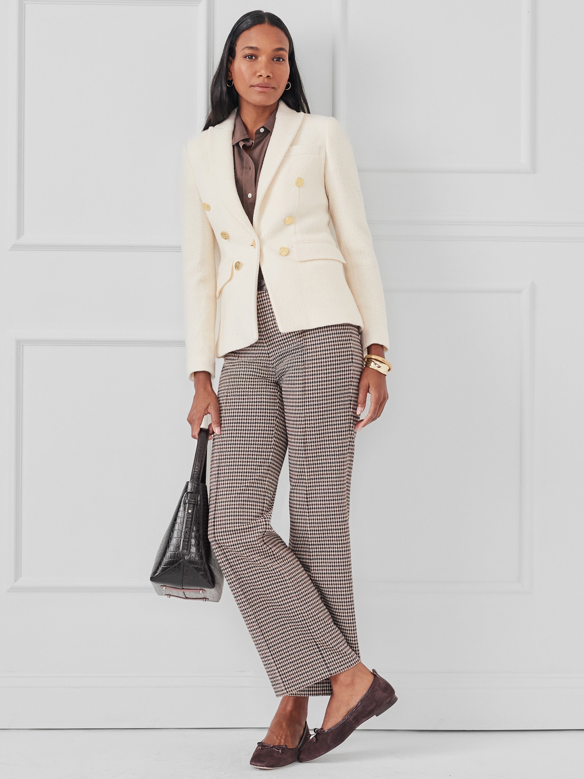Long sleeves Lapel collar Double breasted blazer Single center button closure Back vent Bouclé Wool Blend (52% Wool, 48% Tencel) Lined Dry clean only. Imported Size & Fit26″ length, 25″ sleeve (size M) Model is 5’9″ and wearing a size XS