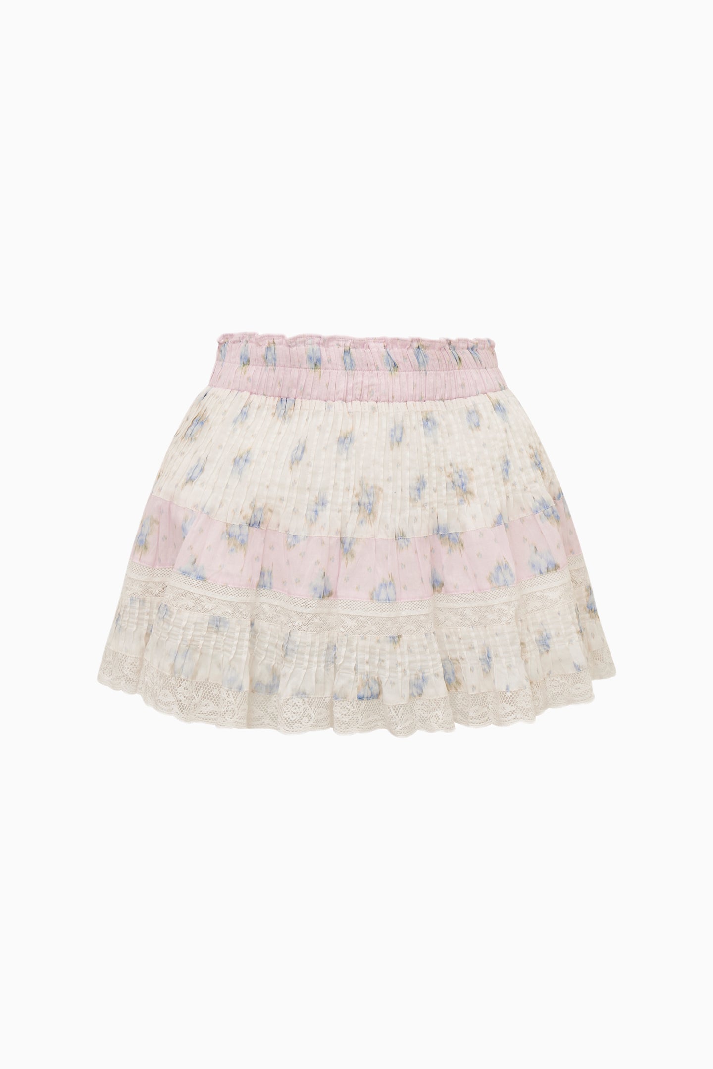 The Gloriana Skirt is designed for warm-weather getaways in lightweight tissue voile printed with a soft ikat-inspired floral. This easy A-line mini features delicate pintucks that release into a fuller. floaty shape. with lace striping throughout for a touch of Victorian charm. Finished with an elastic waistband for effortless. pull-on wear—perfect for pairing with your favorite bikini top or the Aleni Top for a full set on vacation.