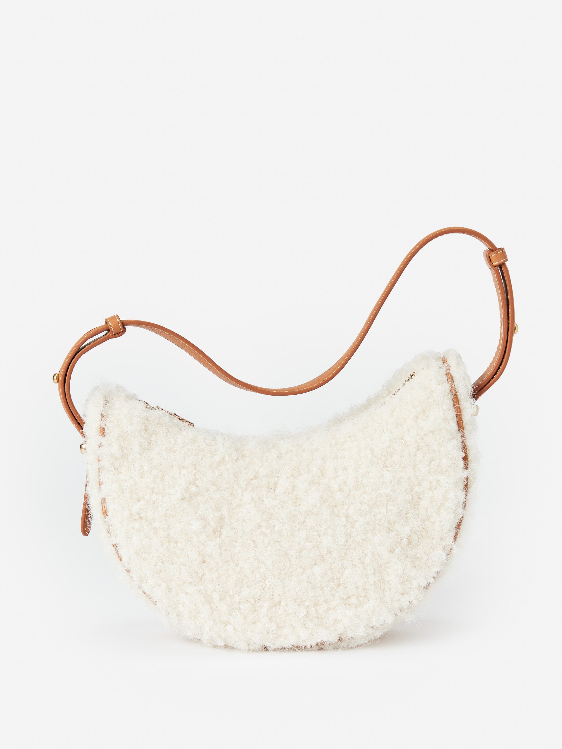 In a distinctive crescent shape, the Mezzaluna handbag fits perfectly on your shoulder, or you can wear it as a crossbody with the removable strap. Stash your wallet, phone, and keys and be stylishly out the door.